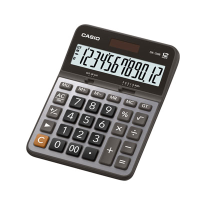 เครื่องคิดเลข สีเงิน คาสิโอ DX-120B ขาดดีเพราะ มีขนาดกลางพอดีวางบนโต๊ะ วัสดุเกรด A ราคากลางๆ