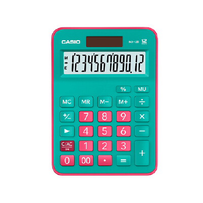 เครื่องคิดเลข คาสิโอ MX-12B-GNRD สีเขียว-แดง เครื่องคิดเลขขนาดเล็กฝ่ามือ สีเขียวปุ่มแดง สองพลังงานแสงอาทิตย์ และแบตเตอรี่