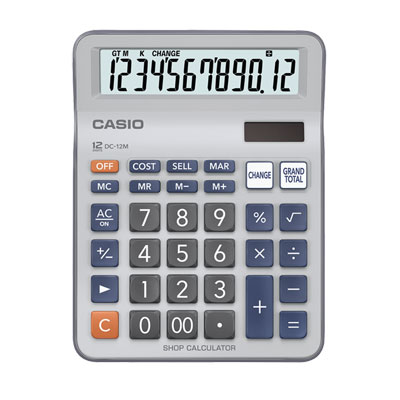Casio DC-12M เครื่องคิดเลขที่ออกแบบมาสำหรับร้านค้าโดยเฉพาะเครื่องคิดเลข คาสิโอ รุ่น DC-12M มอบความพิเศษให้กับการใช้งานในร้านค้า ด้วยฟังก์ชันเงินทอน สำหรับการคำนวณเงินทอนจากยอดชำระได้อย่างแม่นยำและรวดเร็ว เพื่อการบริการที่สมบูรณ์แบบ รวมทั้งยังมีการคิดคำนวณต้นทุน ราคาขาย และกำไร เป็นฟังก์ชันที่อำนวยความสะดวกให้กับเจ้าของกิจการโดยเฉพาะ