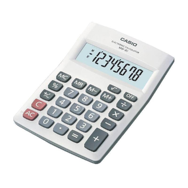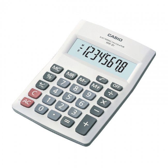 เครื่องคิดเลข Casio MW-8V-WE เครื่องคิดเลขขนาดเล็ก 8 หลักสีขาวใช้ถ่าน 2 A รหัส : 201 ราคา : 249 บ.จำนวนมากมีส่วนลด .- ประเภท : เครื่องคิดเลข สีสรร/พกพา เครื่องคิดเลข Casio MW-8V-WE