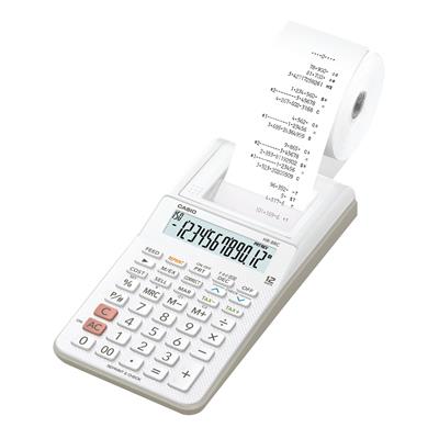 เครื่องคิดเลข Casio HR-8RC+AD สีขาว พิมพ์กระดาษ ได้ ขนาดกะทัดรัพ ถือเดิน ได้ ใช้หมึกแท่งสักหลาด IR-40