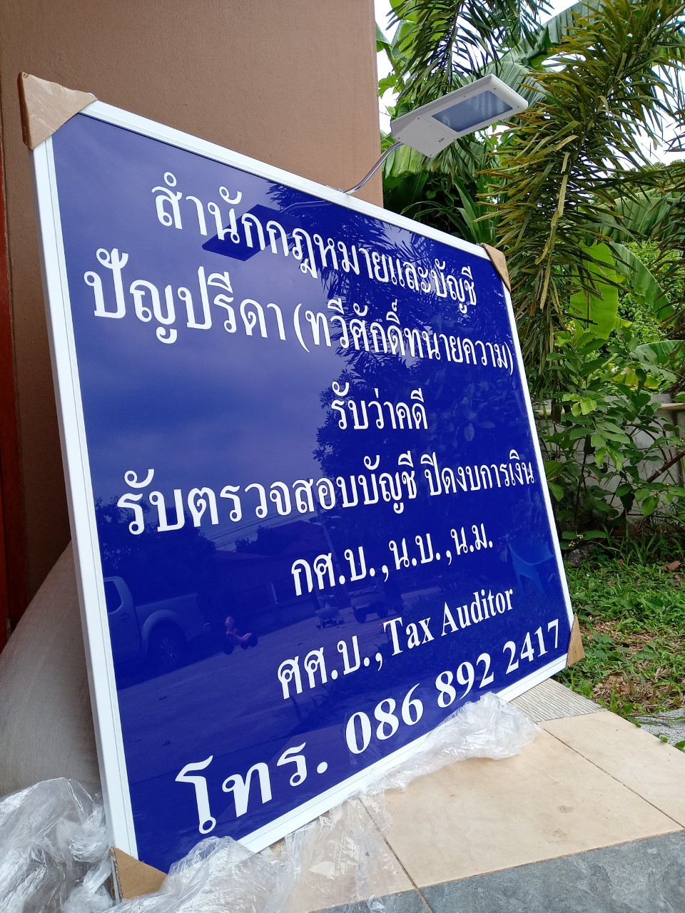 รับทำป้ายอะคิลลิค ติดสติกเกอร์ พร้อมไฟโซล่าส่องเวลากลางคืน