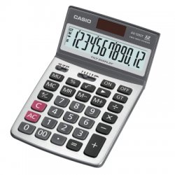เครื่องคิดเลข สีเงิน คาสิโอ AX-120B เครื่องคิดเลข ทรงยาวทำจากวัสดุสีอัลลอยอลูมิเนียม ใช้พลังงานแสงอาทิตย์และแบตเตอรี่